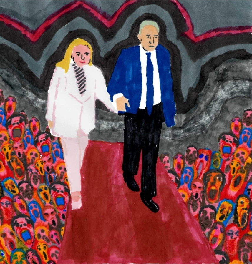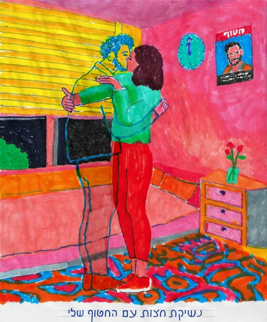 Энгельмайер давно был известным художником, у него выходили книги, были выставки в галереях и музеях, он получал премии, числился среди звезд альтернативного комикса, сотрудничал с режиссерами и музыкантами, преподавал в Бецалеле, а в 2016 году, будучи уже совершенно сложившимся автором, знаменитым своими ироническими парадоксами и провокациями, вдруг придумал для себя новый образ, который раньше жил только в его комиксах — вульгарную и сексуальную голую блондинку Шошке. Застенчивый пятидесятилетний бородатый очкарик надевал розовый плюшевый костюм с гротескными грудями и гениталиями напоказ, красные туфли, очки с ресницами, красил губы и превращался в лихую даму без комплексов, которая участвовала в многочисленных перформансах, насмехаясь над любыми правилами и стереотипами. Бойкая Шошке выходила на протестные демонстрации, попадала в полицию и не унималась. Но после катастрофы 7 октября 2023-го она пропала, потому что в это время Зеев Энгельмайер начал рисовать «ежедневные открытки».