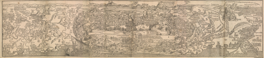 Среди важнейших экспонатов этого раздела — вид на Иерусалим работы немецкого политика и монаха Бернхарда фон Брейденбаха, который в 1483 году отправился в путешествие, взяв в спутники голландского художника Эрхарда Ревиха. После двух лет паломничества он создал иллюстрированный путеводитель Peregrinatio in Terram Sanctam, который мгновенно стал «бестселлером XV века» — настоящей сенсацией, выдержавшей более десяти переизданий на десяти языках; издание содержало огромное количество иллюстраций и, главное, складную карту Иерусалима, которая представлена на выставке развернутой во всю длину.